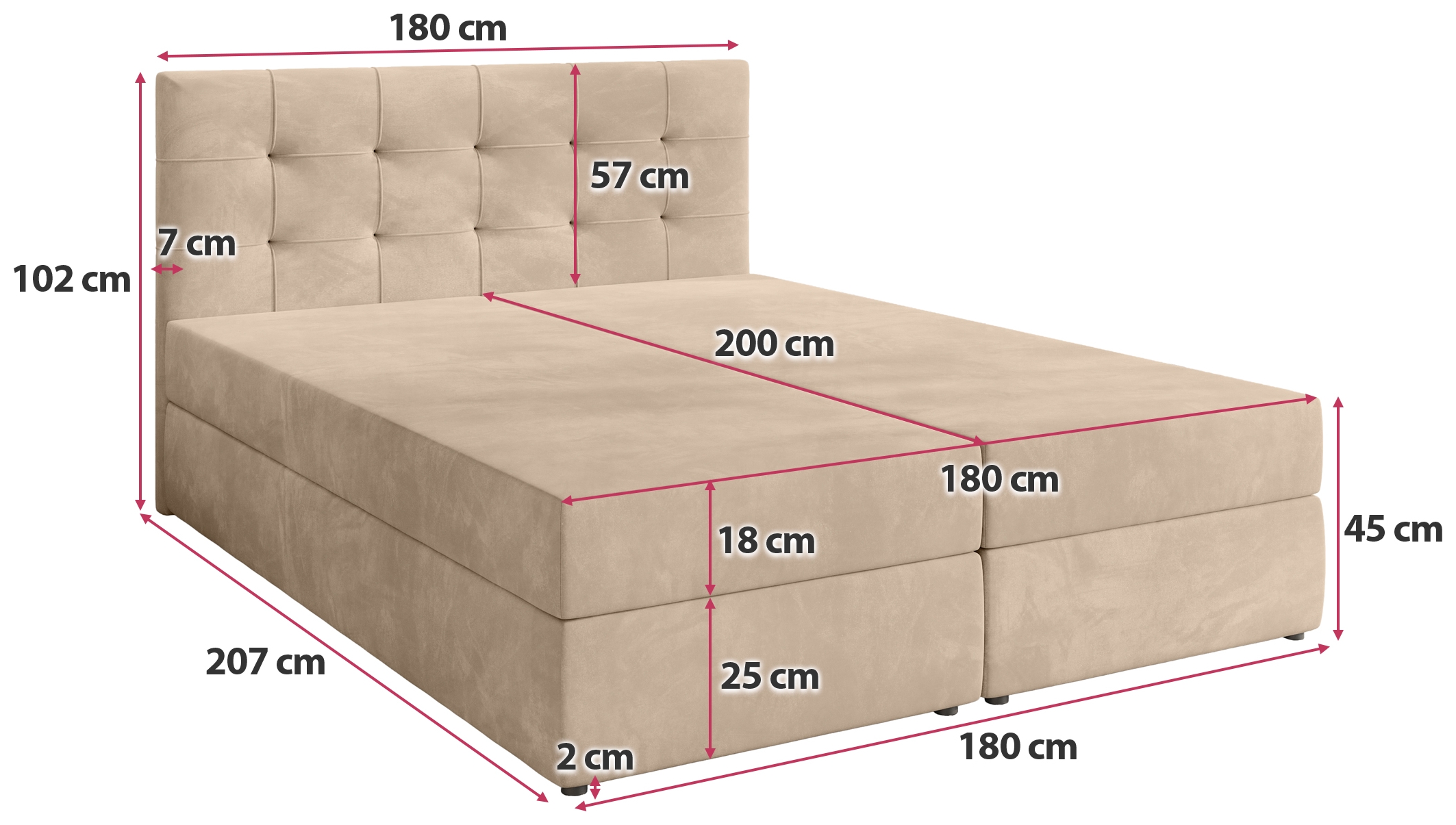 Das Kontinentalbett DETROIT mit Stauraum 180x200 cm ist eine Kombination aus Stil und Funktionalität. Das Continentalbett für das Schlafzimmer verfügt über ein gepolstertes Kopfteil mit effektvollen Nähten und Steppungen, die das Möbelstück deutlich auszeichnen und dem Raum elegante stilistische Akzente verleihen.
