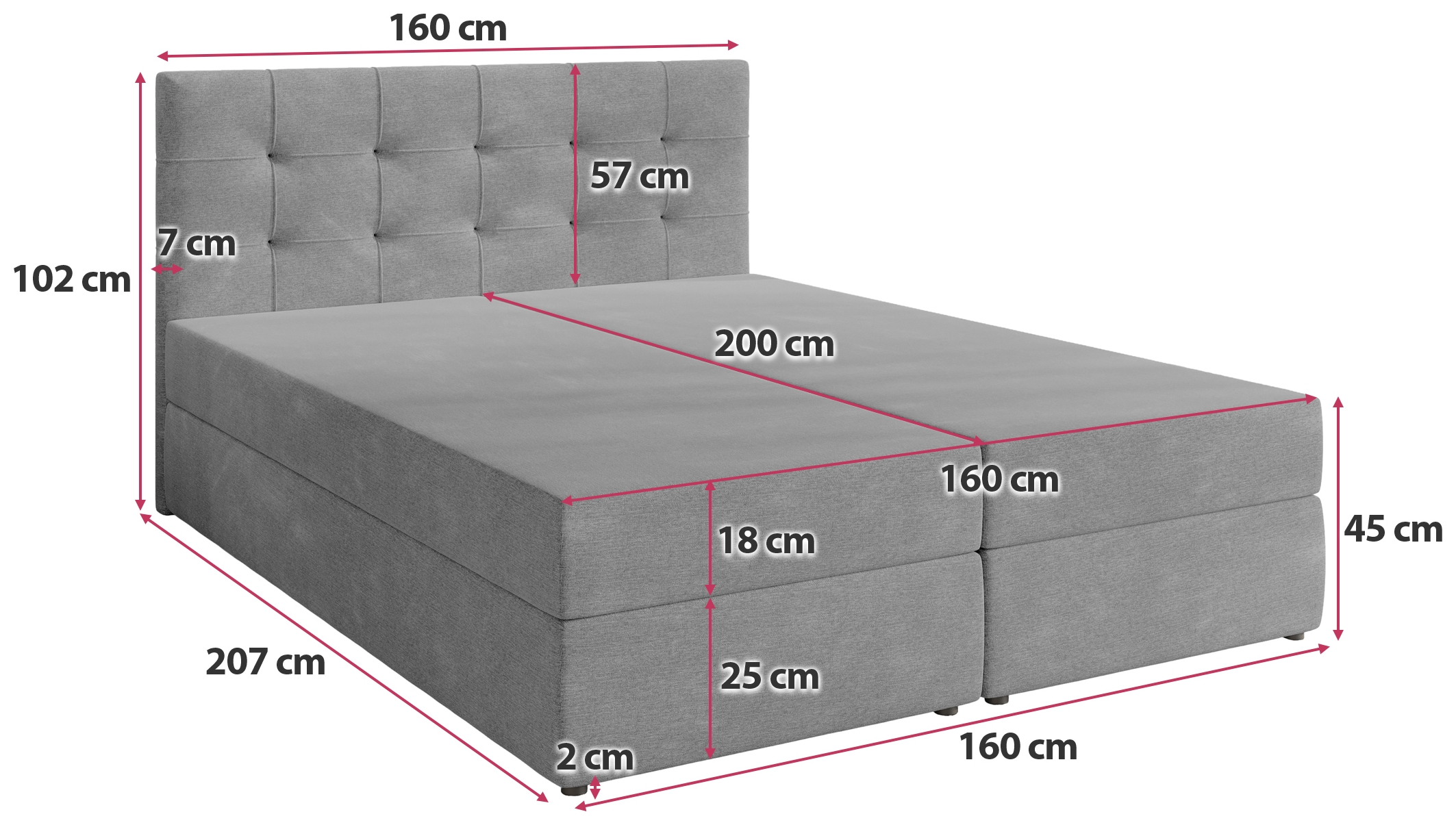 Das graue Kontinentalbett mit Stauraum 160x200 cm DETROIT ist eine Kombination aus Stil und Funktionalität. Das Continentalbett für das Schlafzimmer verfügt über ein gepolstertes Kopfteil mit effektvollen Nähten und Steppungen, die das Möbelstück deutlich auszeichnen und dem Raum elegante stilistische Akzente verleihen.