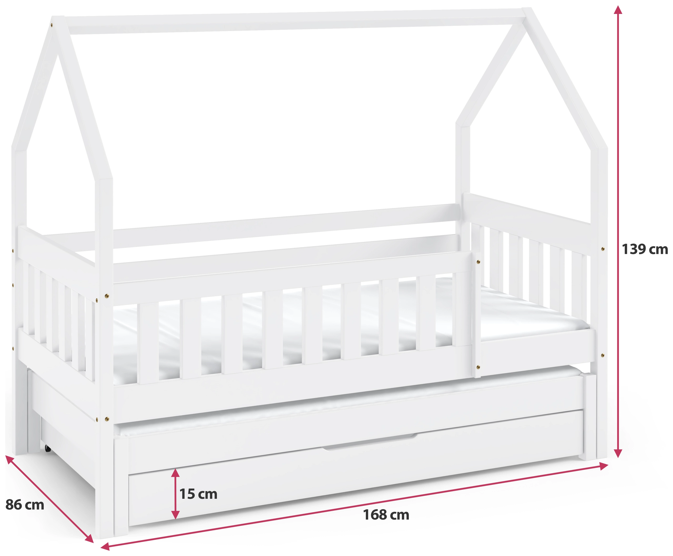 Das ausziehbare Landhausbett ist nicht nur ein Schlafplatz, sondern auch eine praktische Stauraumlösung. Im unteren Teil des Bettes untergebracht schublade auf Rädern ist der ideale Ort, um Bettzeug, Spielzeug oder Bücher aufzubewahren und das Kinderzimmer ordentlich zu halten.