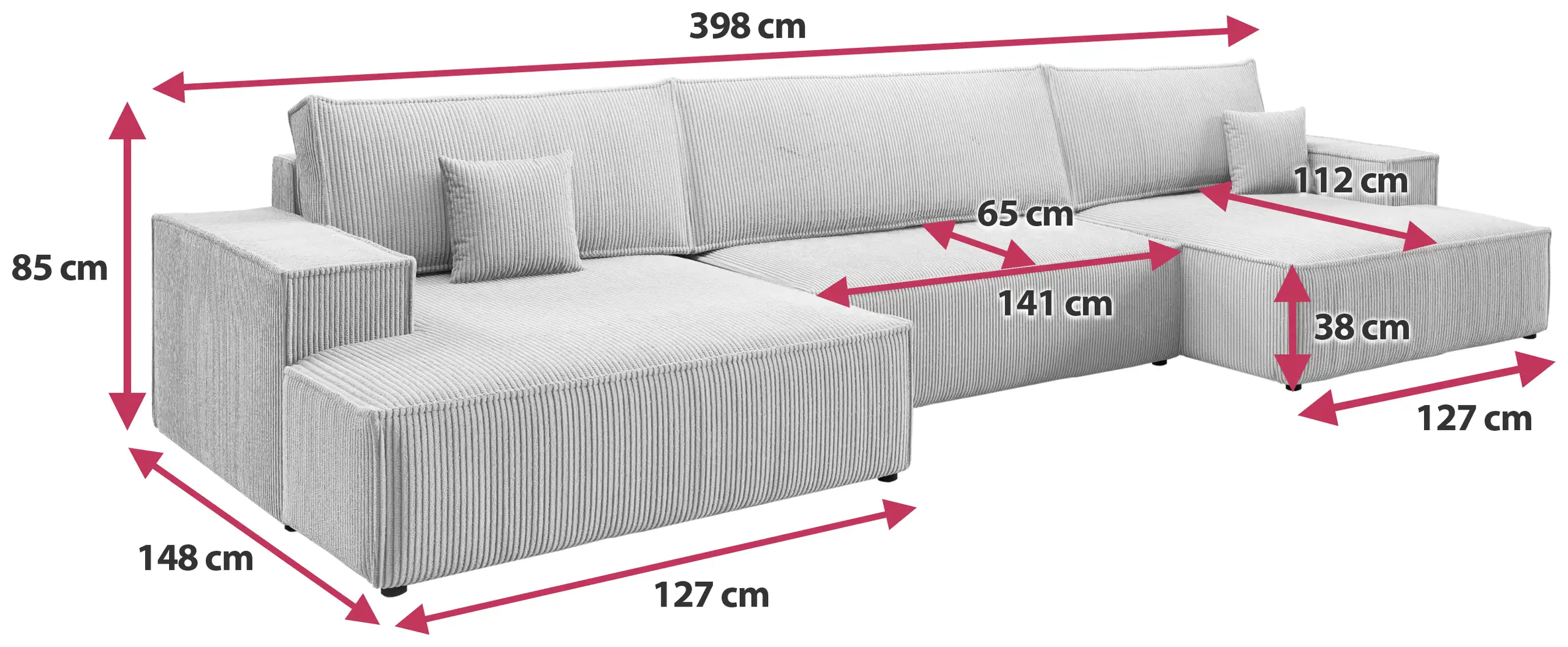 - Funktion Schlafen mit einer Fläche von 344x133 cm ermöglicht ein bequemes Nickerchen im Wohnzimmer oder einen gelegentlichen Nachtschlaf.