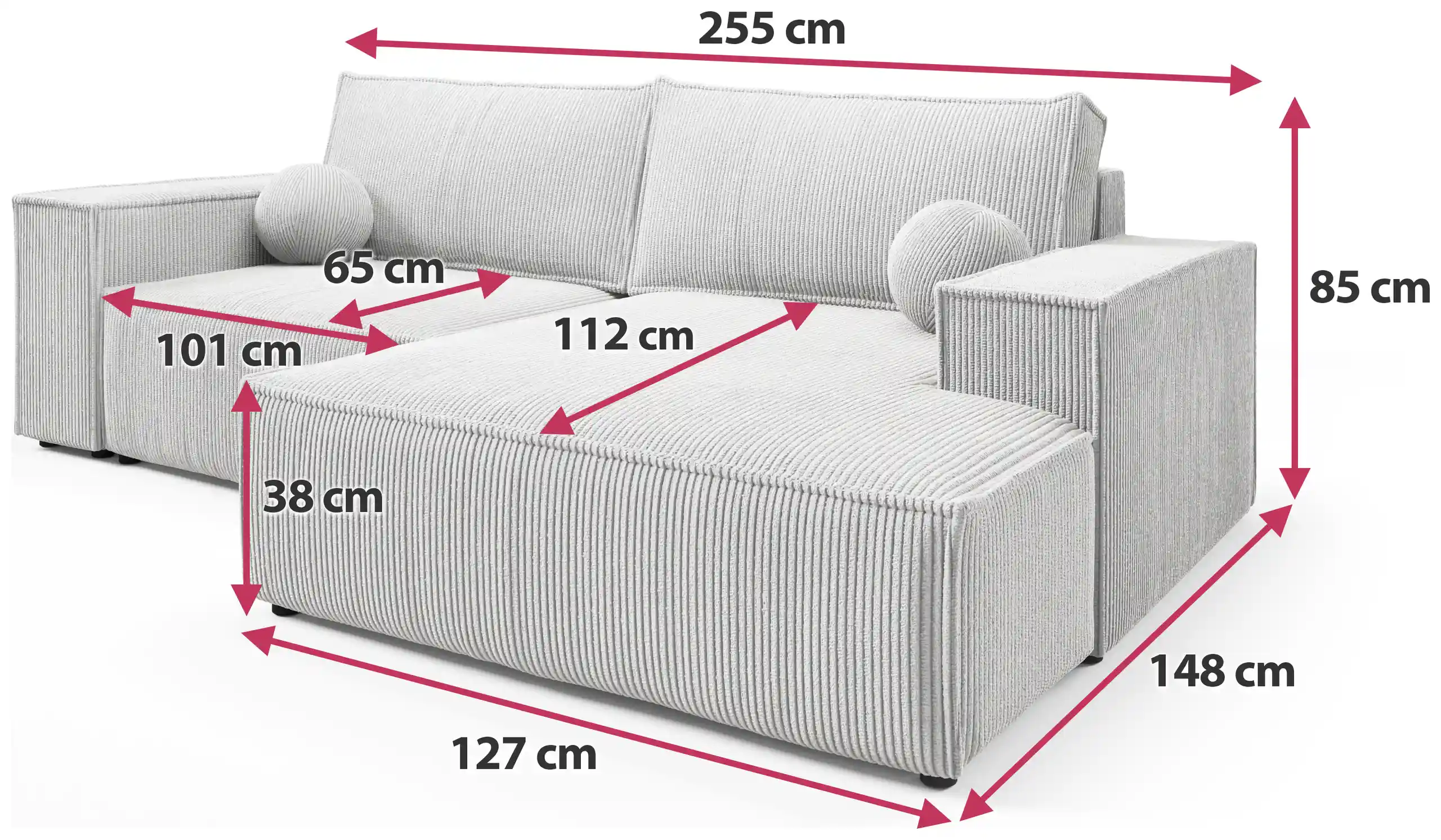Kord-Ecksofa für das Wohnzimmer PABLO MINI ist ein Synonym für Komfort und Funktionalität, ideal für jede moderne Einrichtung. Dieses Ecksofa mit Schlaffunktion wird Sie mit seinem einzigartigen Design und dem weichen Kordstoff überraschen.
