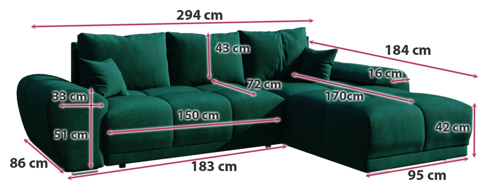 Verchromte Beine und elegante Nähte verleihen der Ecke ein modernes Aussehen. Ein Bettzeugbehälter unter der Sitzfläche sorgt für Ordnung, und die Rückenlehne ist mit einem Stoff in der gleichen Farbe wie das Möbelstück gepolstert, so dass das Eckmöbel überall aufgestellt werden kann - auch mitten im Wohnzimmer. Das Modell NUBES ist eine Lösung für alle, die Wert auf Ästhetik und Zweckmäßigkeit legen. Das universelle Design ermöglicht die Installation für Links- oder Rechtshänder - Sie müssen sich beim Kauf nicht entscheiden.