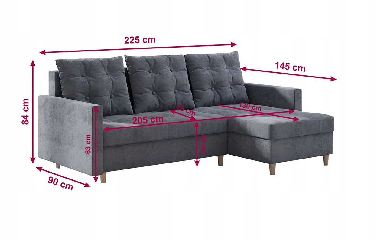 • Das Ecksofa hat eine Schlaffunktion mit einer Fläche von 145x205 cm. Zum Aufklappen ziehen Sie den Sitz zu sich heran und klappen die Rückenlehne um.