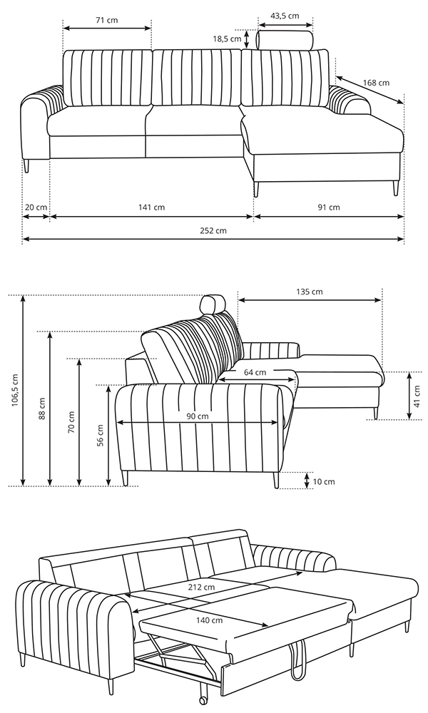 Legen Sie Wert auf Komfort und eine schöne Optik bei der Inneneinrichtung? Das Ecksofa  NANCY  passt perfekt in jedes Interieur. Die schlichte Form und die stilvollen schwarzen Beine verleihen diesem ausziehbaren Ecksofa ein zeitloses Design. Der Entspannungsbereich mit dem Ecksofa Nancy wird komfortabel und nach dem Ausklappen des Ecksofas können zwei Personen darauf schlafen. Das Ecksofa verfügt über  einen großen Bettkasten , so dass auch noch ein zusätzliches Bettset darin Platz findet.  Das Ecksofa mit Schlaffunktion  lässt sich ganz einfach ausklappen, da es über einen speziellen  automatischen Mechanismus verfügt, der das Ausklappen erleichtert . Auch die Rückseite des Ecksofas ist mit diesem schönen Stoff bezogen, so dass das Ecksofa auch als  freistehendes Möbel verwendet werden kann . Der bequeme Sitz und die Kopfstütze helfen Ihnen, nach einem anstrengenden Tag mit einer Tasse Ihres Lieblingstees in der Hand zu entspannen. Das vorgestellte Ecksofa ist linksseitig, jedoch auch in einer rechtsseitigen Variante erhältlich .