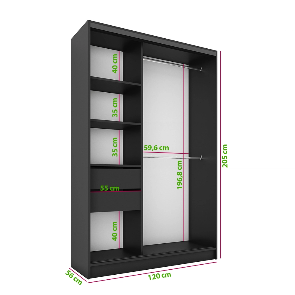 Verschiebbarer Kleiderschrank LAMEL 3D ist die Antwort auf die neuesten Trends, die sich bei einer wachsenden Zahl von Kunden durchsetzen. Bei der Gestaltung dieses Modells haben wir nicht auf das durchdachte Innenleben vergessen, das wir mit vier breiten Regalen, zwei geräumigen Schubladen und bis zu zwei Stangen ausstatten, die jeder Kunde nach seinen Bedürfnissen anpassen kann, da die Löcher für die Installation selbst vorbereitet werden müssen!.