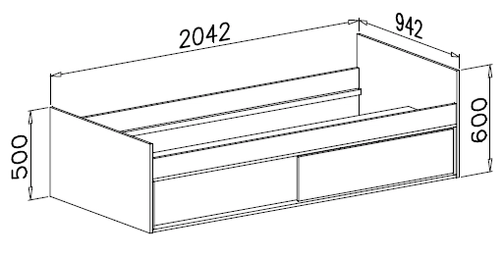 Bett aus der Kollektion der modernen Systemmöbel OCON. Das Bett hat eine Liegefläche von 90 cm x 200 cm, die eine bequeme Erholung für eine Person garantiert, ohne viel Platz einzunehmen. Das Bett verfügt außerdem über ein Staufach für Schlafzimmerzubehör im unteren Bereich, das mit einer Schiebetür versehen ist, so dass Sie schnell und einfach auf Ihre Sachen zugreifen können.