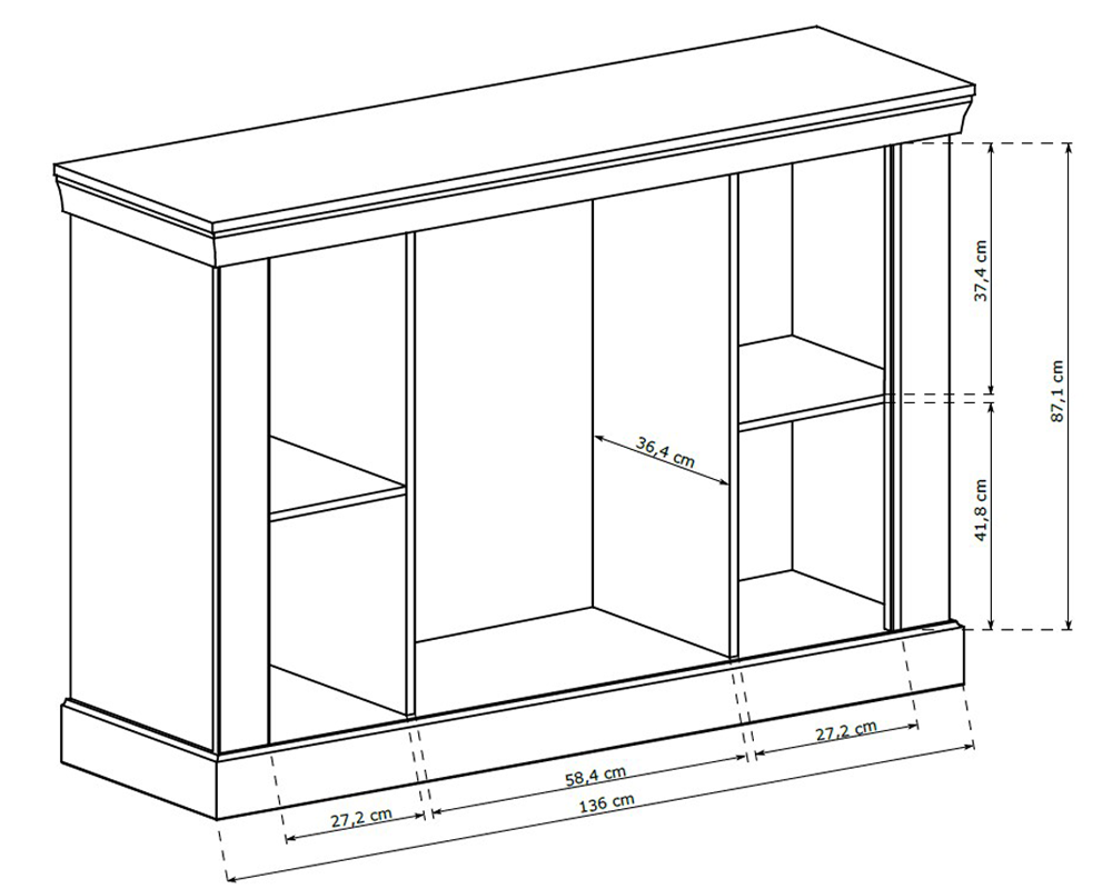 Die Türen der Kommode sind mit Metallscharnieren ausgestattet und schließen leise.