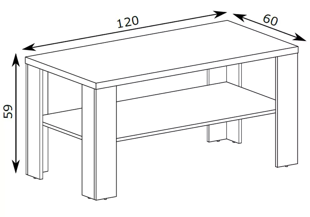 Couchtisch ADRE hat eine 120 x 60 cm große Platte, auf der Sie Ihren Tee und Ihr Lieblingsgebäck abstellen können. Außerdem verfügt der Tisch über eine Ablagefläche am Boden, die sich perfekt für eine Zeitschrift oder die Fernbedienung des Fernsehers eignet.