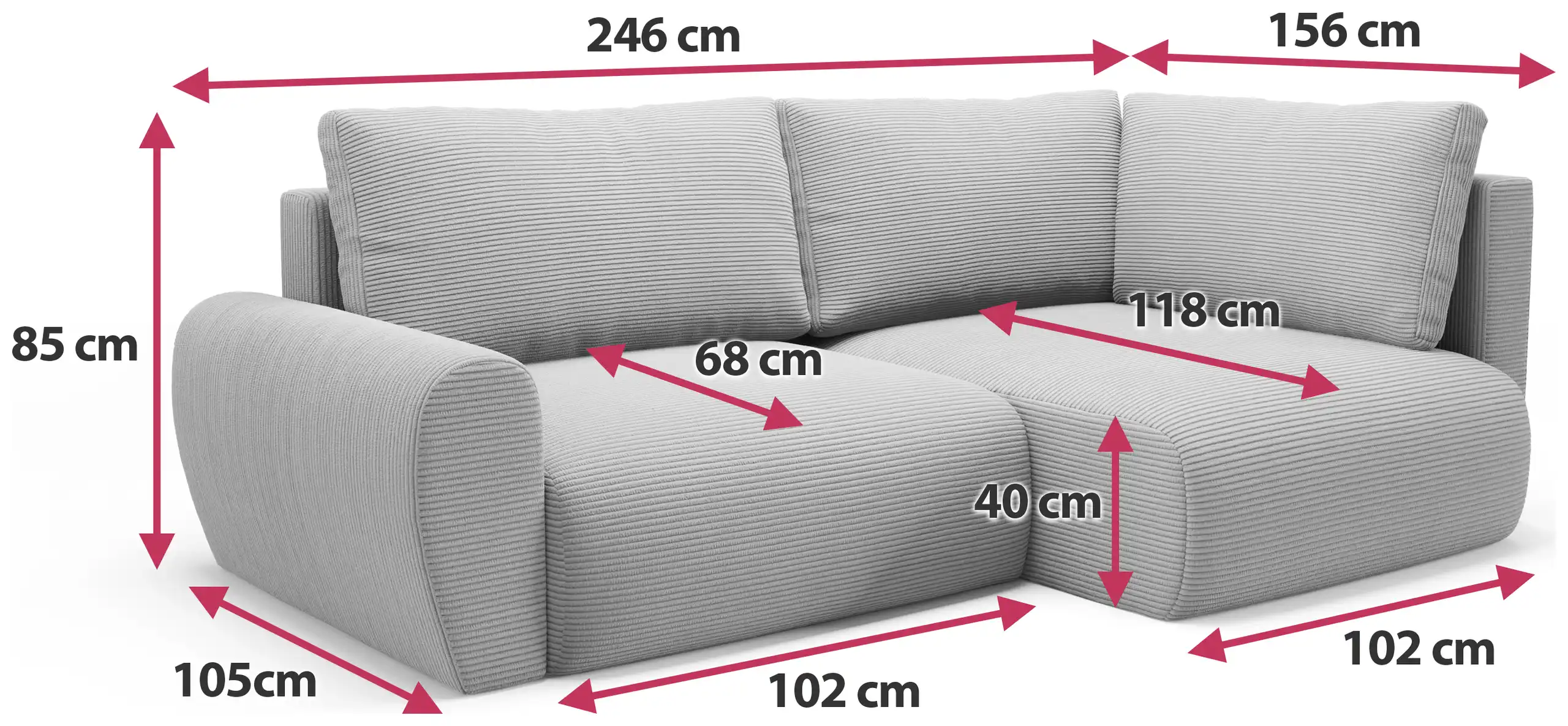 Das Kord-Ecksofa für das Wohnzimmer hat einen Sitz auf Basis von gewellten Federn, über dem sich eine Schicht aus pUR-Schaumstoffe. Das sorgt für Komfort und dauerhafte Flexibilität. In der Erwägung, dass tgroße Rückenlehnen-Kissen erhöhen zusätzlich den Nutzungskomfort und machen jeden Moment, den man auf den Möbeln verbringt, wirklich entspannend.