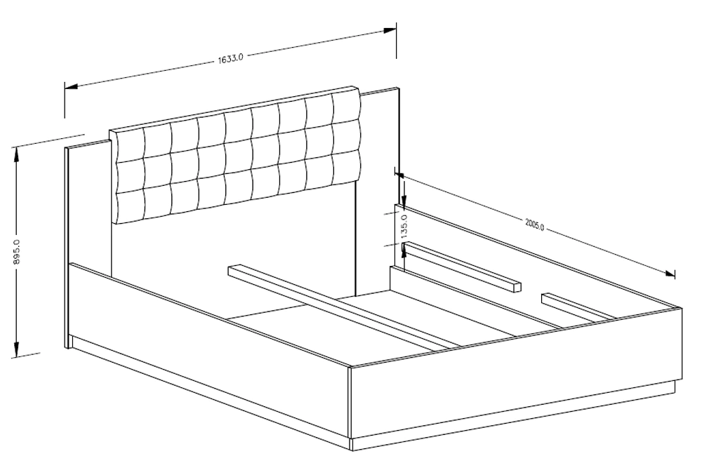 • Das Bett ist aus massiver, 16 mm starker Schichtholzplatte gefertigt.