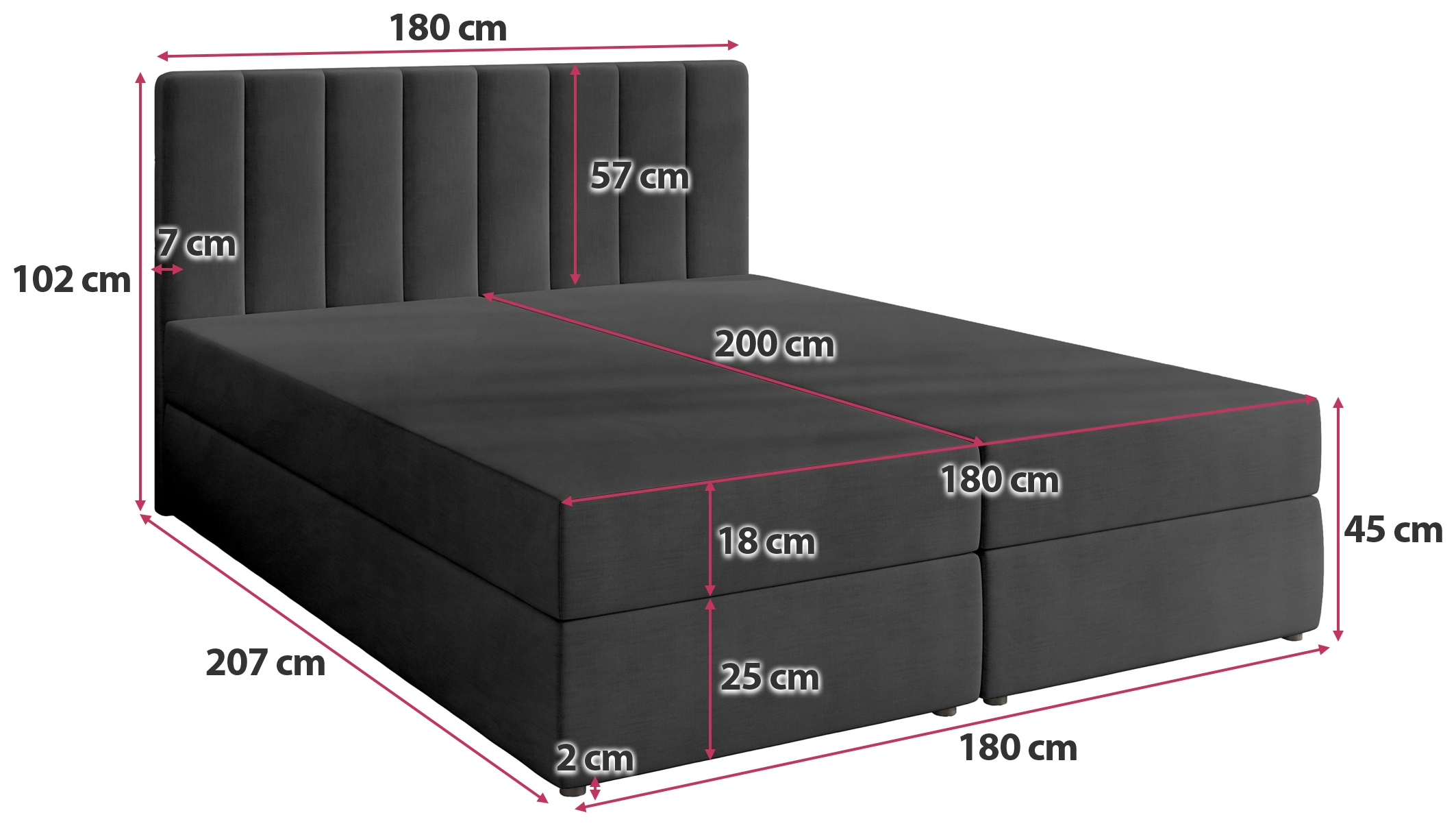 Das 180 x 200 cm große Kontinentalbett DENVER ist ein Angebot für Menschen, die ein bequemes und modernes Bett suchen. Das Continentalbett mit Stauraum ist mit einem gepolsterten Kopfteil im Muster breiter Pfosten ausgestattet, die mit ihrer Schlichtheit den Raum perfekt schmücken.