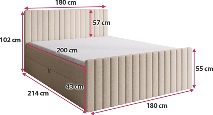 Kontinentales Bett DREAM DUO mit Abmessungen von 180x200 cm ist ein Vorschlag für diejenigen, die Komfort und elegantes Design des Schlafzimmers zu schätzen wissen. Die hohe, gepolsterte Kopfstütze mit dekorativem Muster schmückt nicht nur den Innenraum, sondern bietet auch bequemen Halt beim Ausruhen.