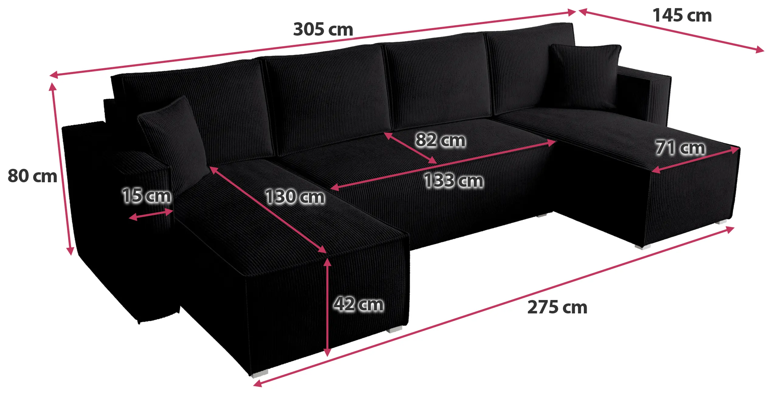 Das Cord Ecksofa ist nicht nur schön, sondern auch praktisch. Ausgestattet mit einer leicht ausklappbaren Schlaffunktion eignet es sich perfekt als zusätzlicher Ruheplatz für Ihre Gäste. Das durchdachte Design gewährleistet eine einfache Handhabung und ermöglicht die schnelle und problemlose Verwandlung von einer eleganten Sitzgelegenheit in ein bequemes Bett.