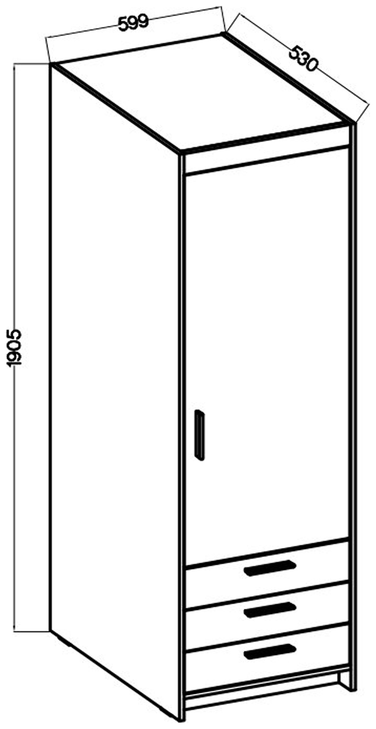 Präsentieren Sie Ihren Raum mit einer eleganten und funktionellen Garderobe KUBA, die sich perfekt in jedes Interieur einfügt. Der eintürige Kleiderschrank mit einer Breite von 60 cm ist ideal für alle, die sowohl Stil als auch Zweckmäßigkeit schätzen. Aus hochwertigem 15-mm-Laminat gefertigt, ist es langlebig und leicht zu reinigen, und seine kanten sind mit Melamin geschützt, die einen zusätzlichen Schutz gegen tägliche Abnutzung bietet.