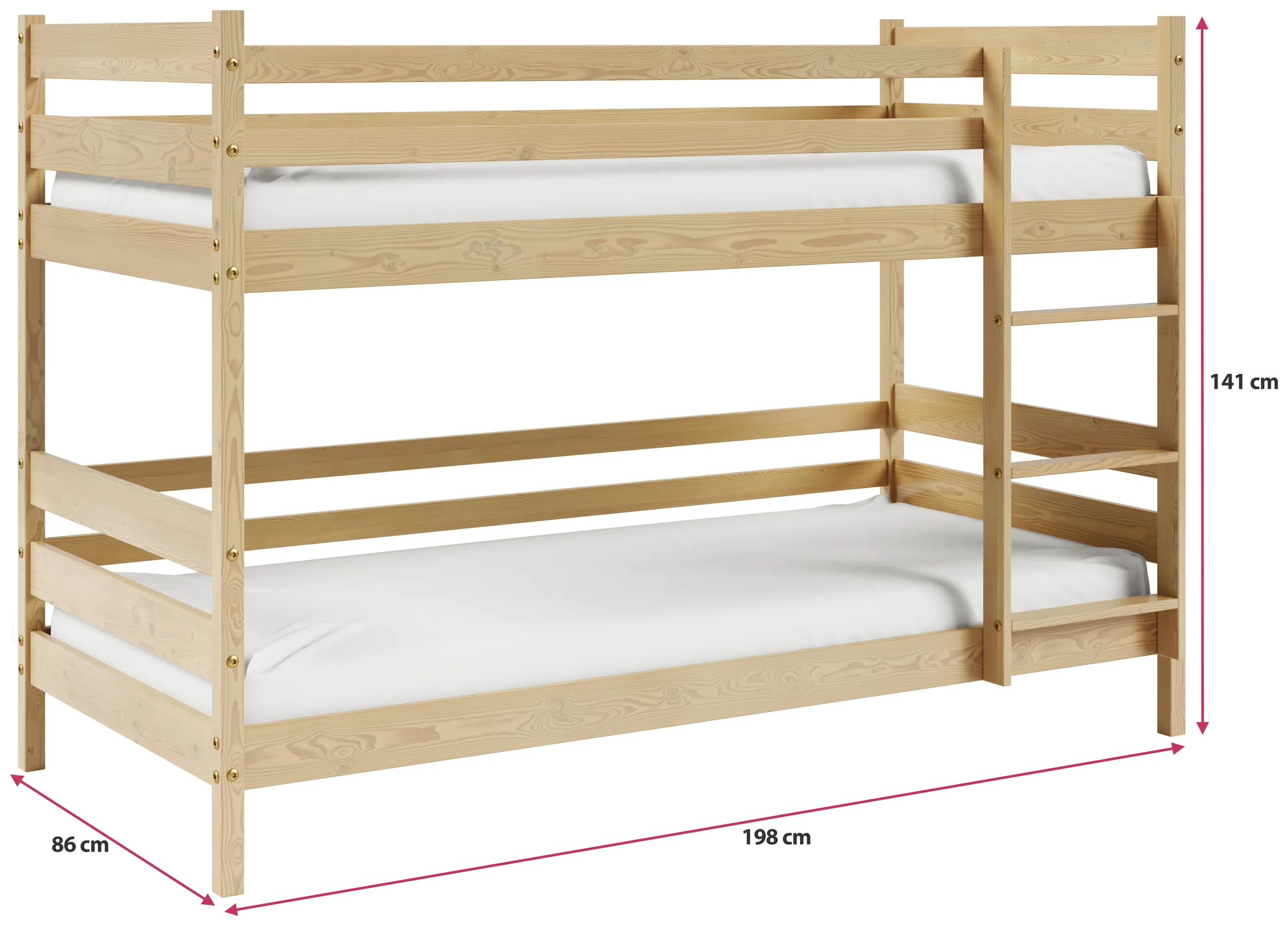 Das hochfunktionelle und stilvolle Etagenbett LUMISLE, ideal für das Kinderzimmer. Hergestellt aus hochwertigem kiefernholz, herrlich mit seiner natürlichen Färbung, die Wärme und Gemütlichkeit in einen Raum bringt. Das Design dieses Etagenbettes wurde im Hinblick auf die Sicherheit und den Komfort Ihres Kindes entwickelt.