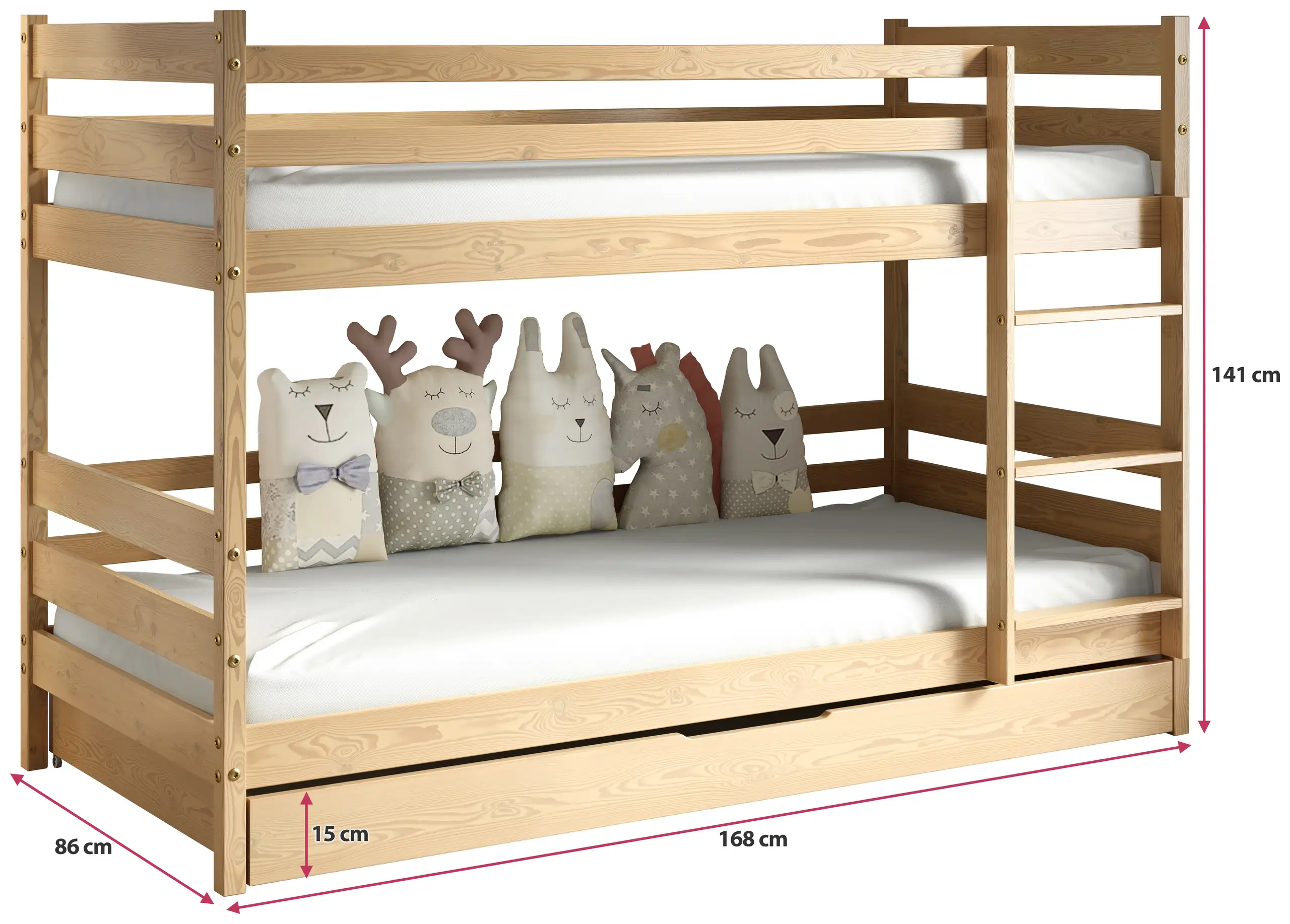 Wir laden Sie ein, unser einzigartiges Etagenbett zu entdecken LUMISLE, ideal für jedes Kinderzimmer. Sorgfältig hergestellt aus hochwertigem kiefernholz, dieses Bett zeichnet sich durch Stärke und Langlebigkeit aus, wobei die die natürliche Färbung der Kiefer. Sein natürliches Aussehen bringt eine Atmosphäre der Ruhe und Harmonie in das Kinderzimmer und bietet nicht nur einen Platz zum Schlafen, sondern auch ein dekoratives Element.