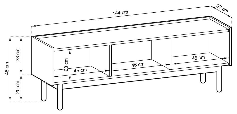 Ergänzt wird das Ganze durch stilvolle hohe Beine aus Holz . Sie werten nicht nur das Design der Möbel auf, sondern erleichtern auch die Sauberkeit unter dem Fernsehschrank, was insbesondere für Allergiker nützlich ist.