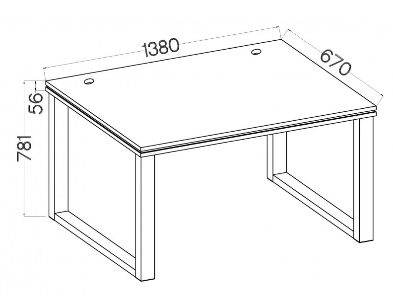 Der Schreibtisch im Loft-Stil MULL verfügt über eine große, rechteckige Platte mit den Maßen 138 x 67 cm, die für ein angenehmes Arbeiten sorgt. Der Loft-Schreibtisch ruht auf schwarzen Metallbeinen, die an der Unterseite über Anti-Rutsch-Füße verfügen. Die massive Tischplatte besteht aus 56 mm starker Schichtstoffplatte und ist mit einem PVC-Umleimer versehen, sodass sie Ihnen viele Jahre lang treue Dienste leisten wird. Im Inneren befindet sich eine 12 mm starke schwarze Platte.