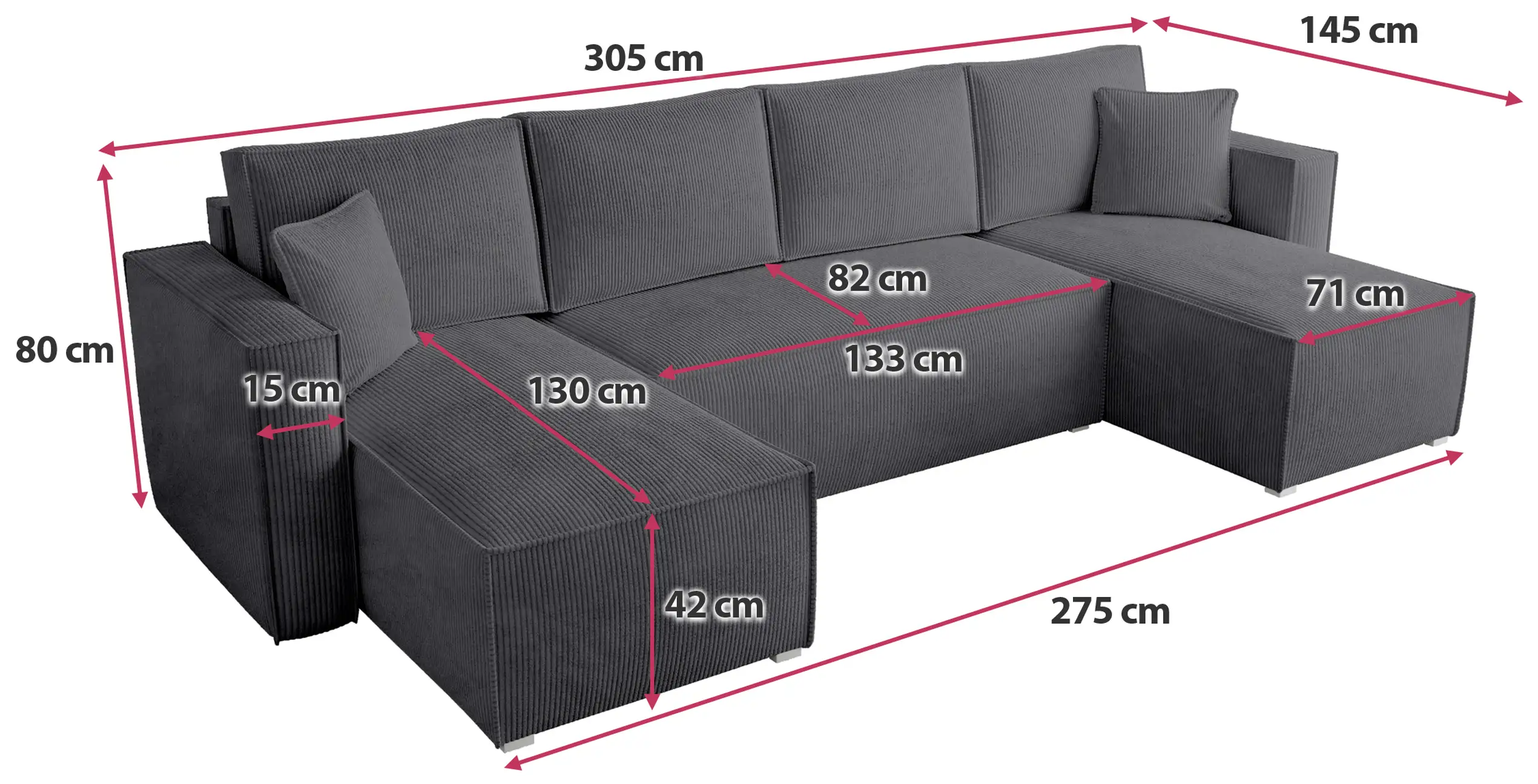 Entdecken Sie mit unserem Cord-Ecksofa TOP U eine neue Dimension von Komfort und Stil . Sein moderner Stil verbindet die klassische Eleganz von Cord mit avantgardistischen Innendesigntrends und schafft so ein Möbelstück, das sowohl in minimalistische als auch in kunstvollere Räume perfekt passt. Dieses Ecksofa ist mehr als nur ein Möbelstück – es ist der Mittelpunkt jedes modernen Wohnzimmers.