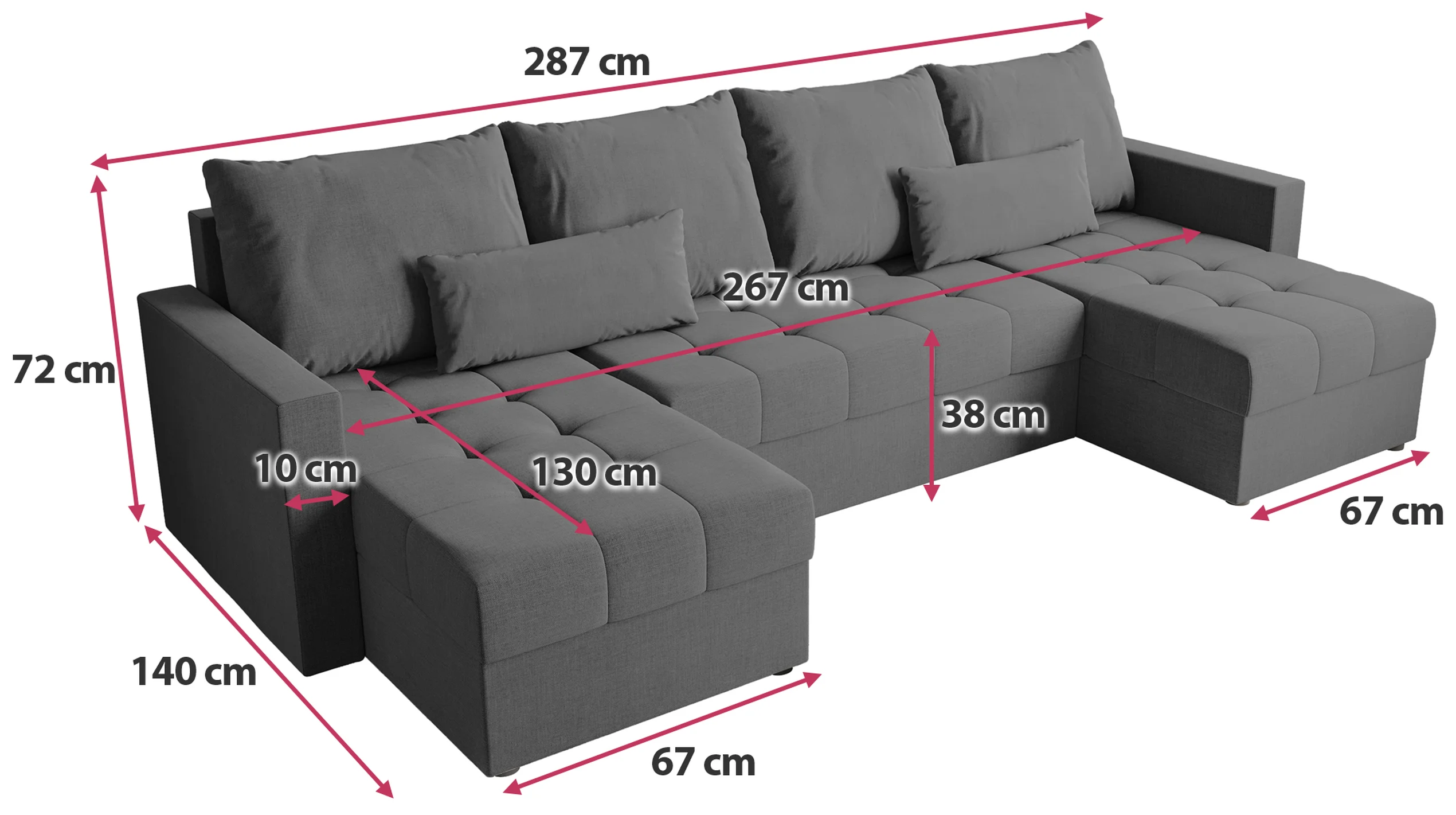 Wenn Sie sich für ein U-förmiges Ecksofa entscheiden, erhalten Sie nicht nur ein elegantes Möbelstück, das zum Mittelpunkt Ihres Wohnzimmers wird, sondern auch eine praktische Lösung, die sich problemlos an die verschiedenen Bedürfnisse des Alltags anpasst. Dank seiner durchdachten Funktionen und seines stilvollen Designs wird dieses Ecksofa sicherlich auch die Erwartungen der anspruchsvollsten Benutzer erfüllen.