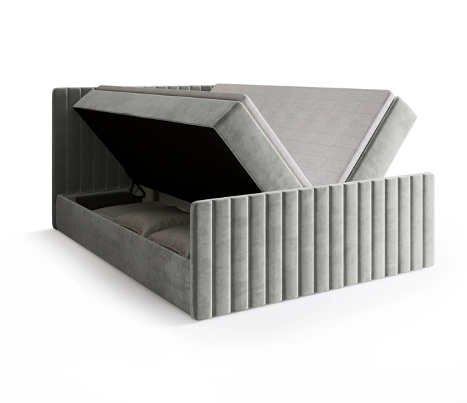 Graues Kontinentalbett 160x200 cm mit Bettzeugbehälter DREAM DUO