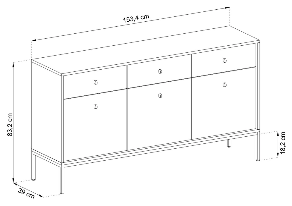 Hinter der Kommode verbirgt sich ein geräumiger Innenraum, der sich perfekt zur Aufbewahrung verschiedenster Gegenstände eignet. Die Türen sind mit soliden Topfscharnieren ausgestattet , die ein sanftes und leises Öffnen und Schließen gewährleisten. Über der Tür befinden sich drei attraktive Schubladen, die der Kommode Charakter verleihen und eine geordnete Aufbewahrung kleiner Gegenstände ermöglichen.