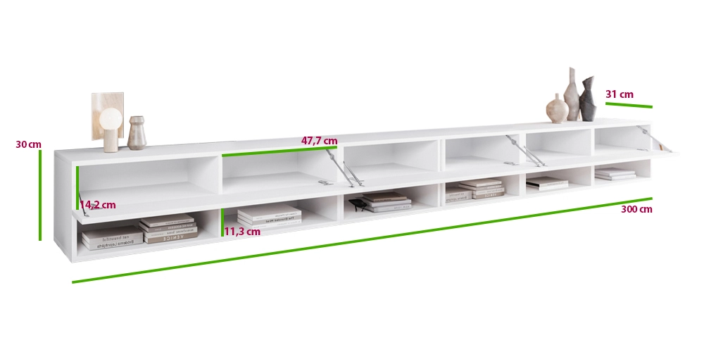 TV-Schrank-Serie AROMA ist eine Lösung, die sich nahtlos in Ihr Wohnzimmer einfügen wird. Erhältlich in mehreren Farbvarianten, die Sie hier finden hier. Die Vielseitigkeit wird durch die Art und Weise vervollständigt, in der der Schrank montiert wird. Sie können ihn entweder auf den Boden stellen oder an die Wand hängen, so dass er dem gesamten Multimedia-Unterhaltungsbereich Ihres Wohnzimmers Leichtigkeit verleiht.