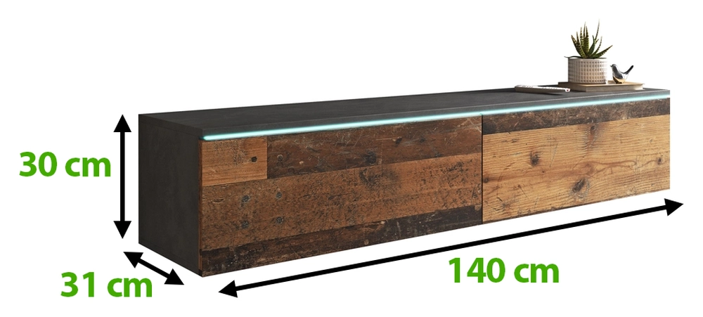 Der hängende TV-Schrank BROMI ist ein elegantes und funktionales Möbelstück, das perfekt in moderne Wohnzimmer passt. Seine Breite beträgt 140 cm . Dies bietet viel Platz für Ihre liebsten Multimedia-Geräte und Dekorationen. Die Fronten bestehen aus hochwertiger MDF-Platte im klassischen Fischgrätenmuster, was dem Schrank einen individuellen Charakter verleiht und seine elegante Ästhetik unterstreicht.