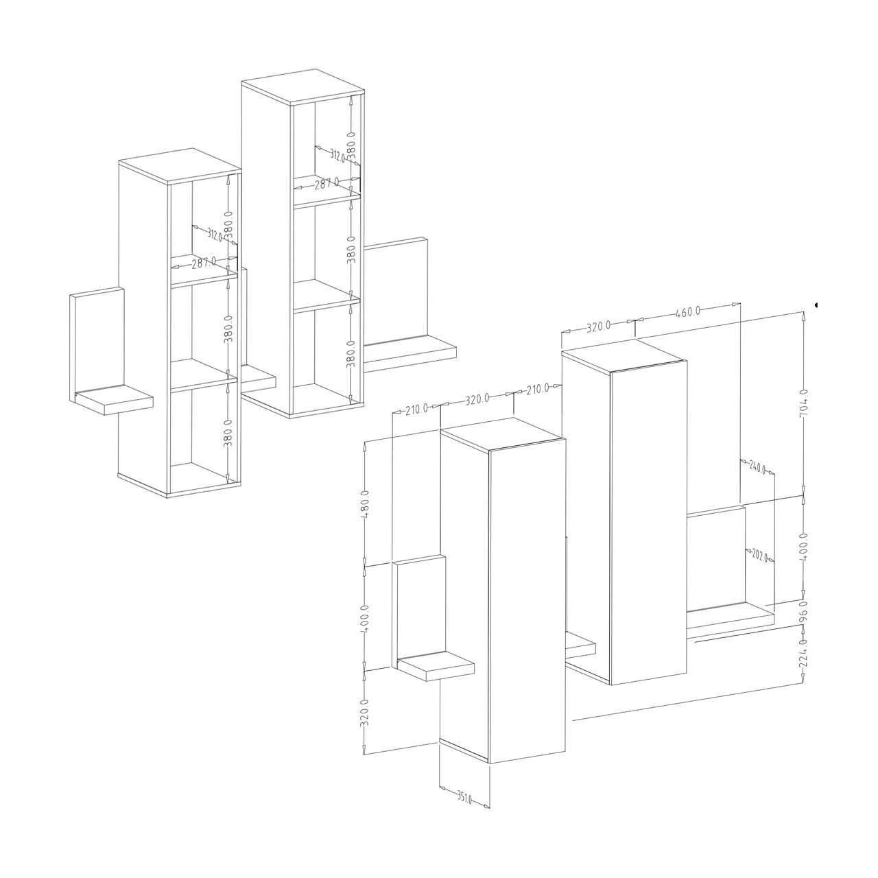 - Die Oberseiten der Regale und Verlängerungen sind aus einer 28 mm starken, laminierten Platte gefertigt.