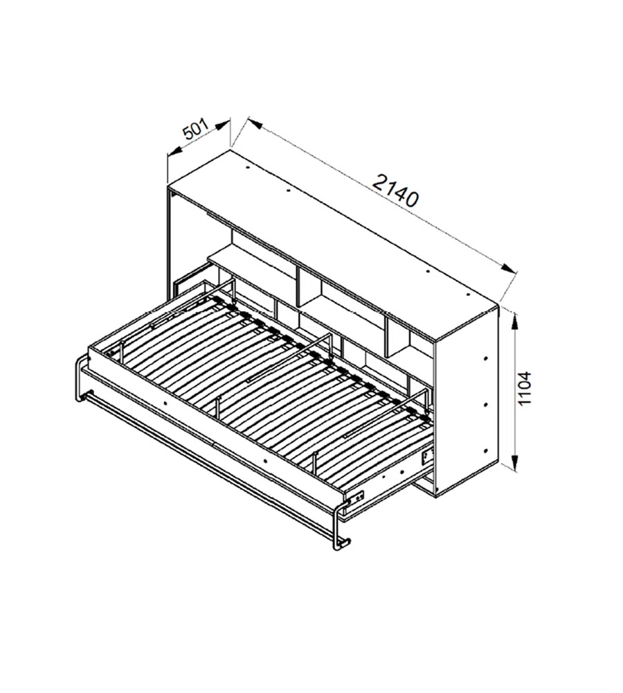 Das horizontale Halbbett aus der INDEX- Kollektion ist für Menschen gedacht, die tagsüber Wert auf Platz in ihrem Zimmer legen und nachts den Kleiderschrank mit einem einfachen Handgriff in ein Bett verwandeln möchten, das bequeme und komfortable Ruhe gewährleistet. Auch als Entspannungsmöglichkeit im Gästezimmer eignet sich ein Schlafsofa gut. So können sich unsere Gäste bequem ausruhen und es nimmt in ihrer Abwesenheit keinen wertvollen Platz ein. Das Schlafsofa ist außerdem mit sieben Ablageflächen ausgestattet, die sich auf zwei Ebenen befinden.