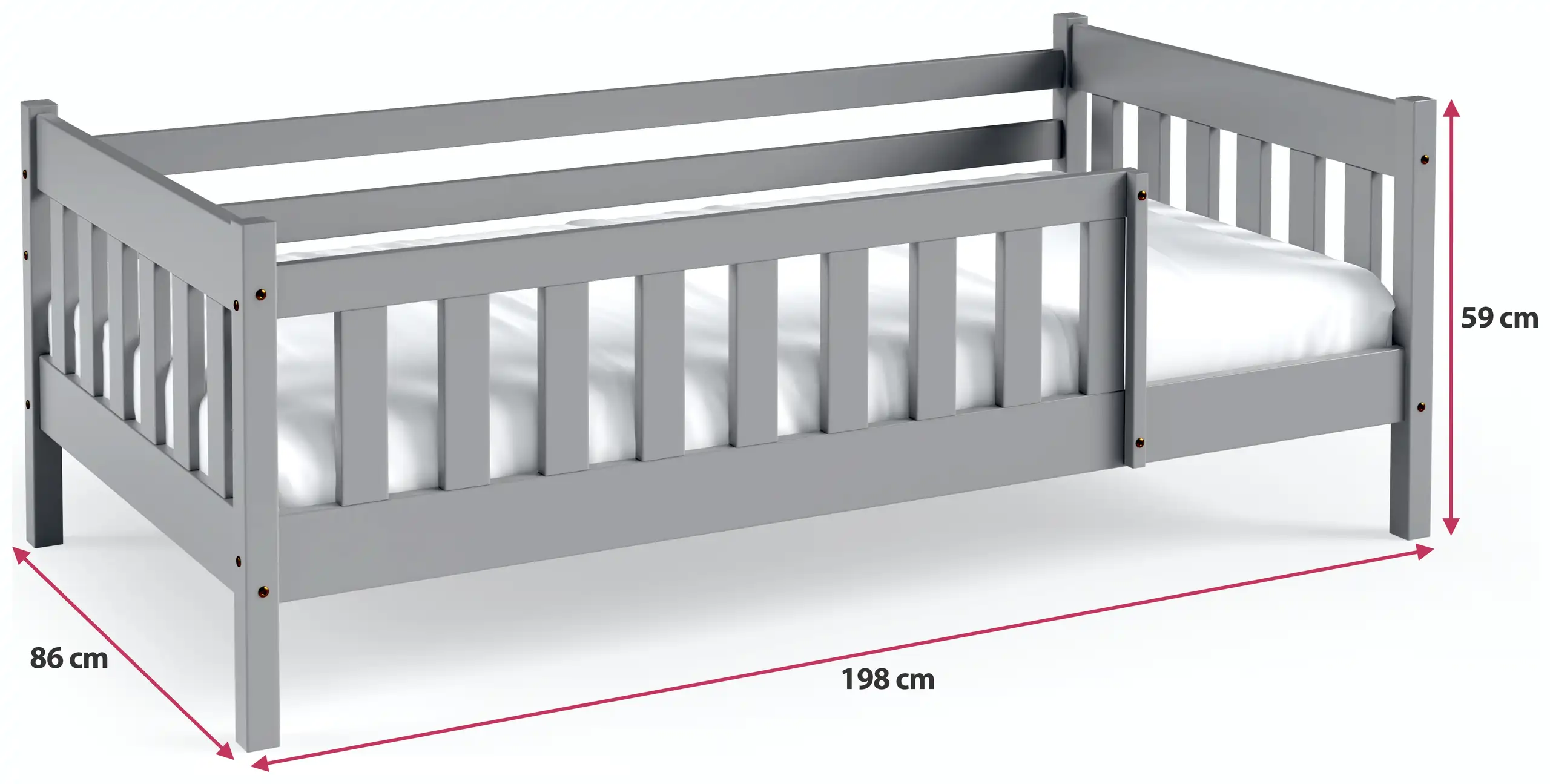 Optimale Abmessungen liegefläche von 80x190 cm, sorgen für Komfort und Bewegungsfreiheit, fördern die gesunde Entwicklung und bieten erholsame Entspannung. Dieses Bett bietet den perfekten Schlafplatz für Ihr Kind und unterstützt es für die nächsten Jahre.