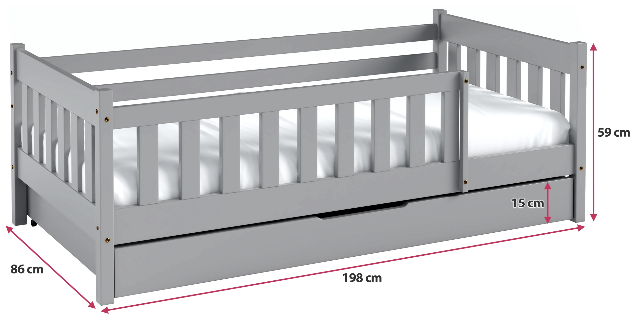 Optimale Abmessungen liegefläche von 80x190 cm, sorgen für Komfort und Bewegungsfreiheit, fördern die gesunde Entwicklung und bieten erholsame Entspannung. Dieses Bett bietet den perfekten Schlafplatz für Ihr Kind und unterstützt es für die nächsten Jahre.