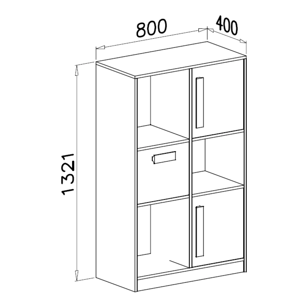 Eine Kommode aus der Kollektion der Kindersystemmöbel GULI mit drei Ebenen, drei Einlegeböden, einer Schublade und zwei Türen ist diese Kommode nicht nur eine praktische Lösung für Ihr Zimmer, sondern hat auch eine dekorative Funktion, und dank der verfügbaren Farben der Fronten und Schränke können Sie die Kommode an Ihr Zimmer anpassen und es beleben.