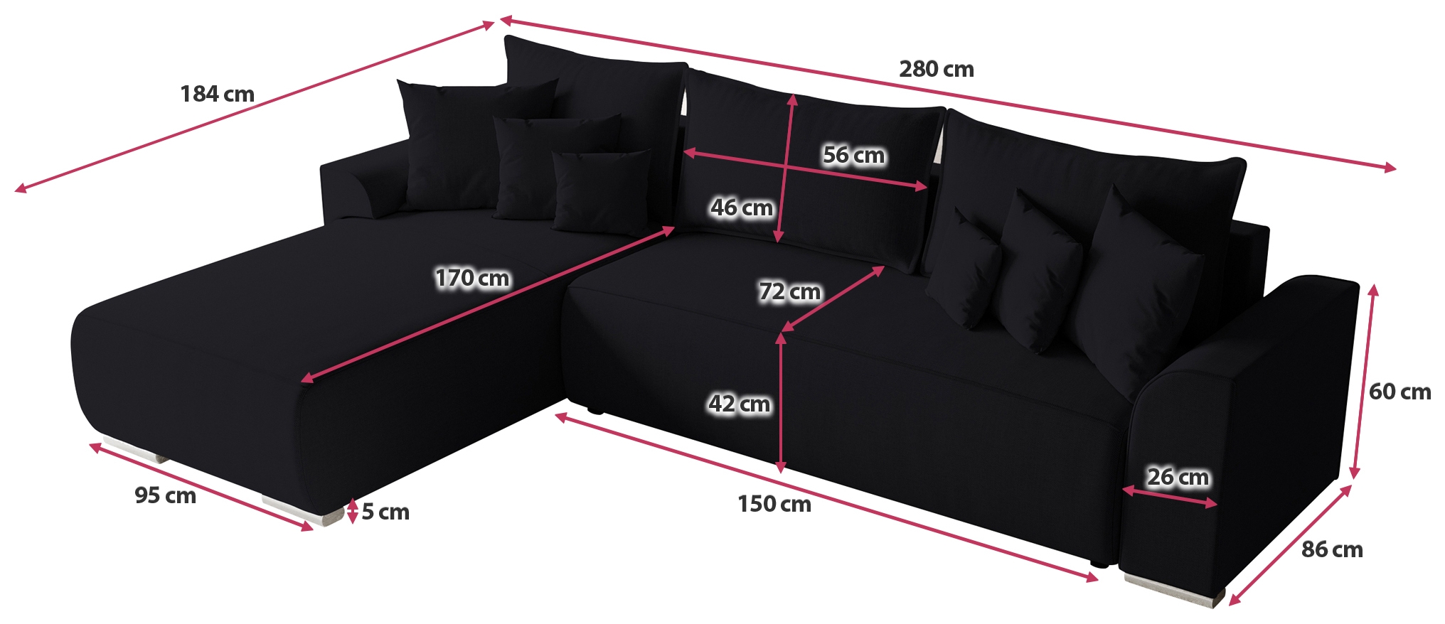 Präsentieren Sie Ihr Zuhause im besten Licht mit unserem Ecksofa SYDNEY . Dieses stilvolle und praktische Möbelstück ist eine perfekte Ergänzung für jede moderne Inneneinrichtung und bietet sowohl Komfort als auch Funktionalität.