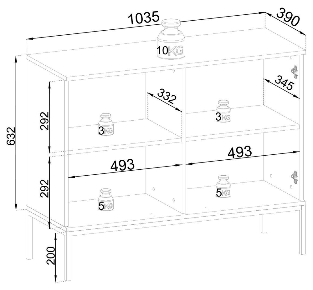 Im Inneren der Kommode befinden sich zwei geräumige Regalböden , die viel Stauraum bieten. Hier können Sie alles verstecken – von Lieblingsbüchern über Nippes bis hin zu Dekorationen.