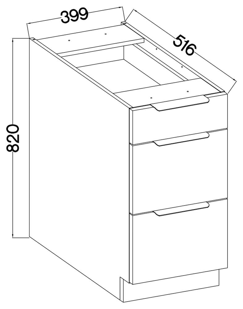 Der kompakte Küchenschrank MARGARET mit 40 cm Breite ist mit drei geräumigen Schubladen ausgestattet . Der Schrank gewährleistet eine optimale Raumausnutzung und einfachen Zugriff auf Ihr Küchenzubehör.