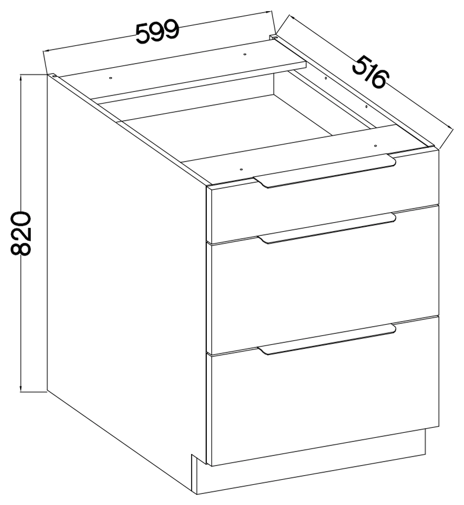 Der Schrank verfügt über drei Schubladen , die eine geordnete Aufbewahrung verschiedener Küchenutensilien ermöglichen. Jede dieser Schubladen ist mit einem Soft-Close-System ausgestattet, wodurch sie sanft und ohne unnötige Geräusche oder Quietschgeräusche geöffnet und geschlossen werden können. Dies ist insbesondere dann nützlich, wenn Sie die Möbel nachts oder an einem Ort verwenden möchten, an dem Ruhe wichtig ist.