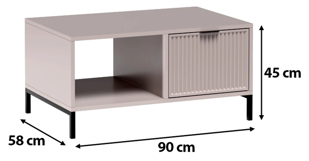 Einführung eines einzigartigen Couchtisches LATINA mit einem modernen Design, das Wärme und Raffinesse in Ihr Wohnzimmer bringt. Hergestellt aus 18-mm-Schichtstoffplatte in kaschmirfarbig, dieses Möbelstück strahlt Gemütlichkeit und Luxus aus und ist gleichzeitig eine funktionale und stilvolle Ergänzung für Ihr Zimmer.