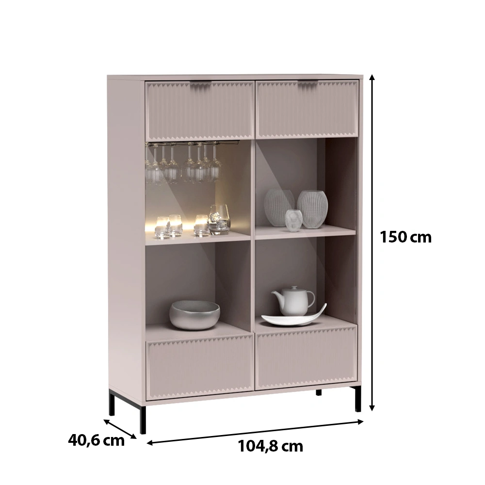 Unterstreichen Sie den Charakter Ihres Wohnzimmers mit unserer geräumigen Vitrine LATINA aus Kaschmir - ein Symbol für zuverlässige Qualität und anspruchsvolles Design.