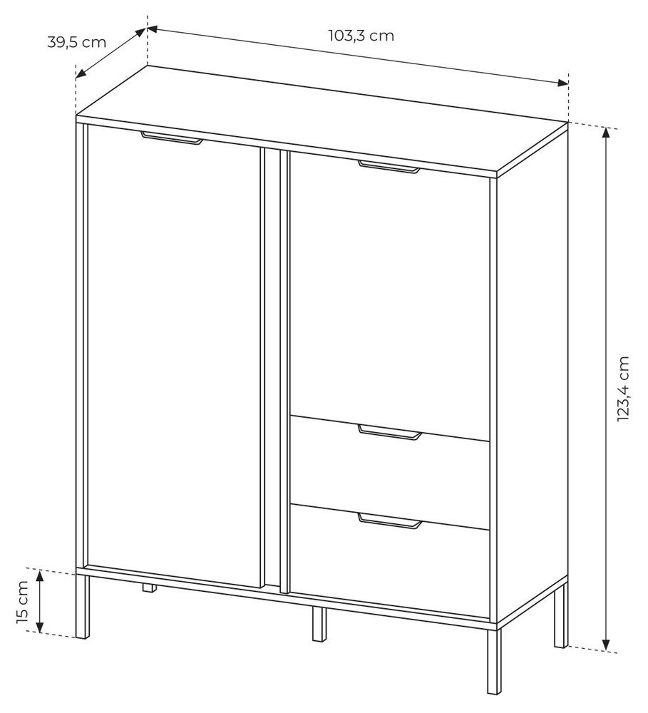- Der Korpus und die Fronten der Kommode sind aus feuchtigkeits- und kratzfester 16 mm starker Schichtstoffplatte gefertigt.