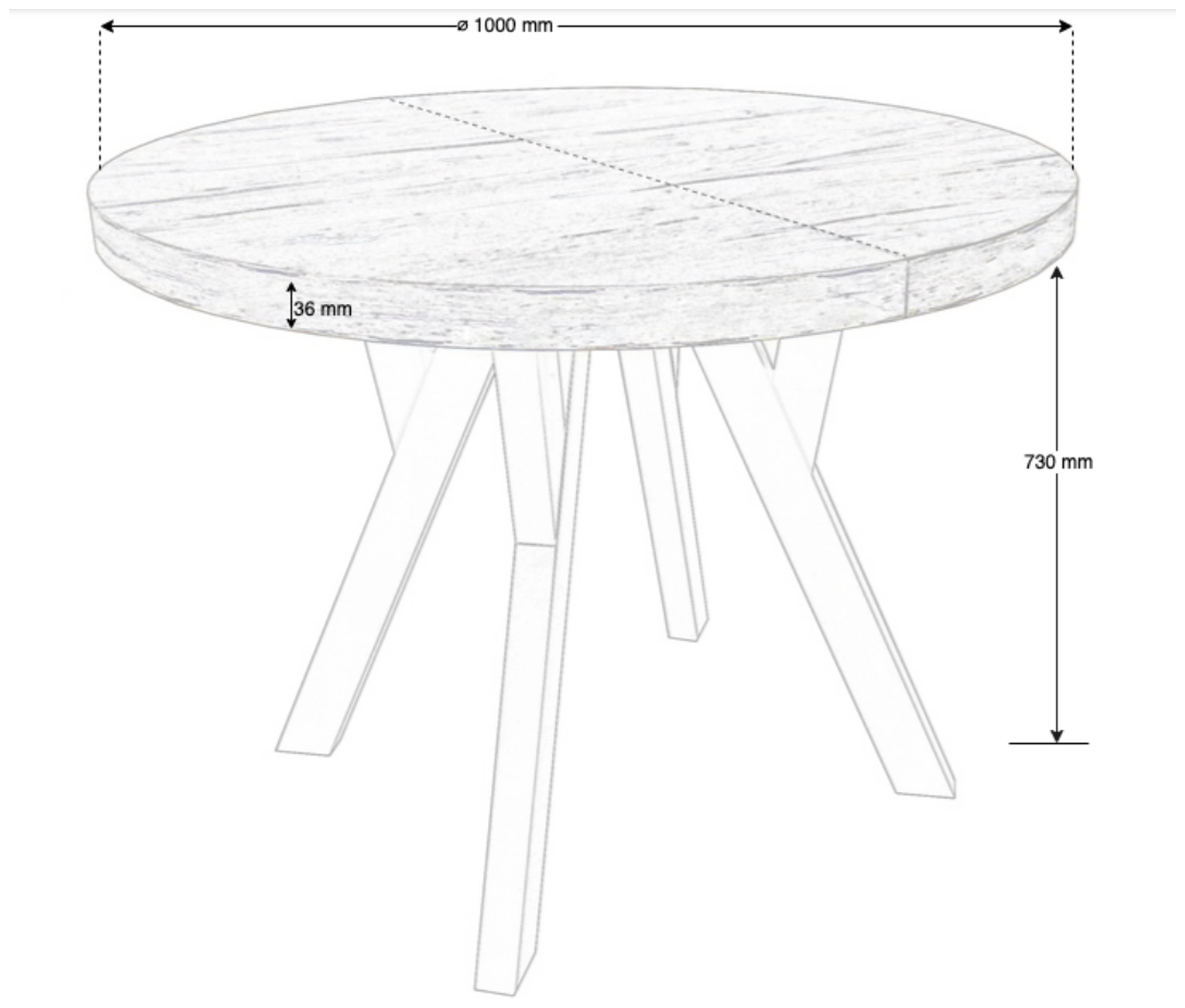 - Die runde Tischplatte ist aus laminierter Platte 36 mm dick. Es zeichnet sich durch einfache Reinigung und Langlebigkeit aus.