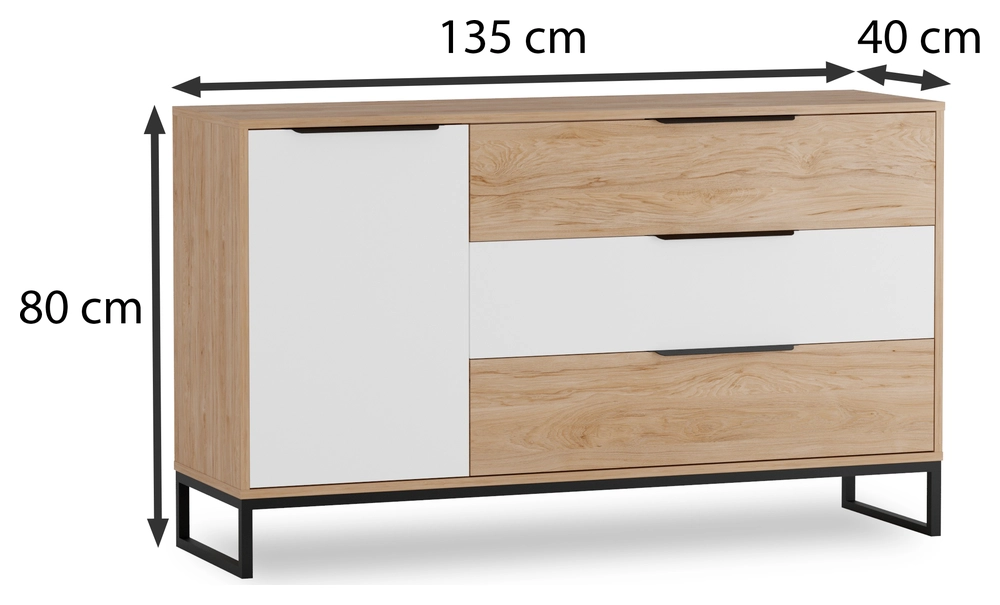 - Kommode aus hickory-Eiche z weiße Fronten.