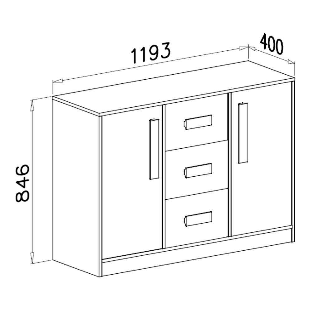 Eine Kommode aus der Kollektion der modernen Systemmöbel GULI hat zwei Einlegeböden und drei Schubladen und ist damit eine praktische und geräumige Lösung für die Aufbewahrung von Kleidung.