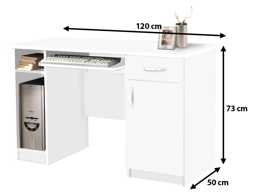 Weißer Computertisch KAMIL ist ein Möbelstück, das jeden Raum in einen idealen Ort zum Lernen, Arbeiten und zur kreativen Entfaltung verwandelt.