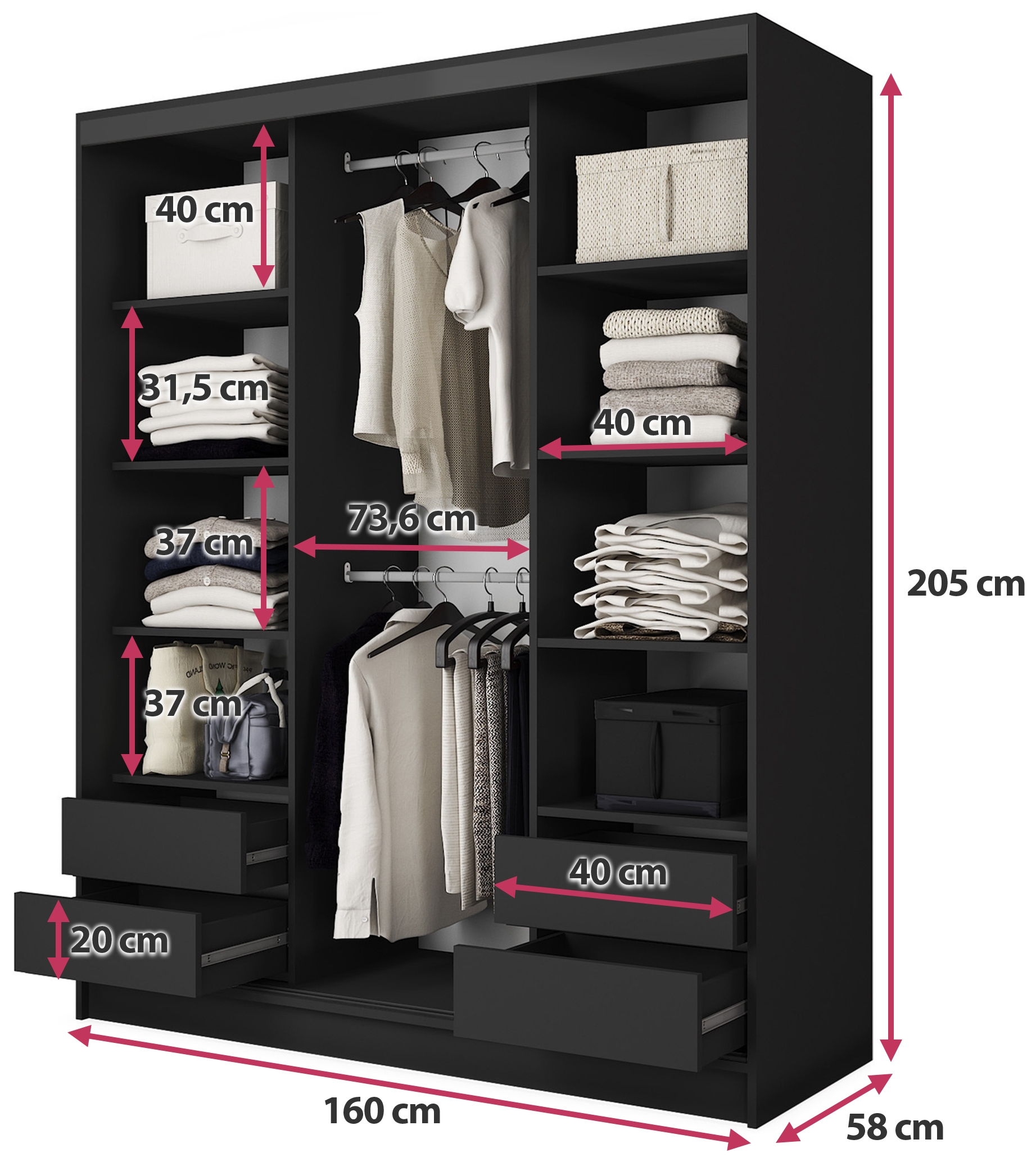 Zusammenfassend lässt sich sagen, dass dieser Schiebetürenschrank mit Spiegel nicht nur ein stilvolles, sondern auch ein äußerst praktisches Möbelstück ist, das selbst die Erwartungen der anspruchsvollsten Benutzer erfüllt und Modernität, Funktionalität und Eleganz vereint.