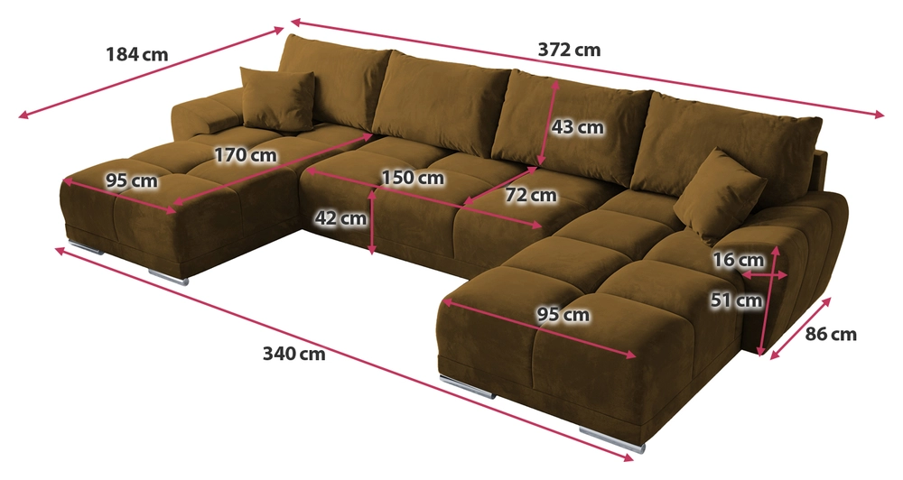Tauchen Sie ein in den Komfort unseres U-förmigen ausziehbaren Ecksofas NUBES , das Ästhetik und Funktionalität perfekt vereint.