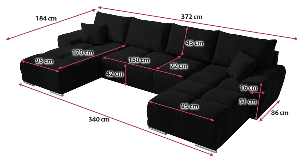 - Das Ecksofa für das Wohnzimmer ist freistehend , was bedeutet, dass es problemlos im zentralen Teil des Raumes platziert werden kann, da jede Seite mit dem gleichen Stoff wie die übrigen Möbelelemente gepolstert wird .