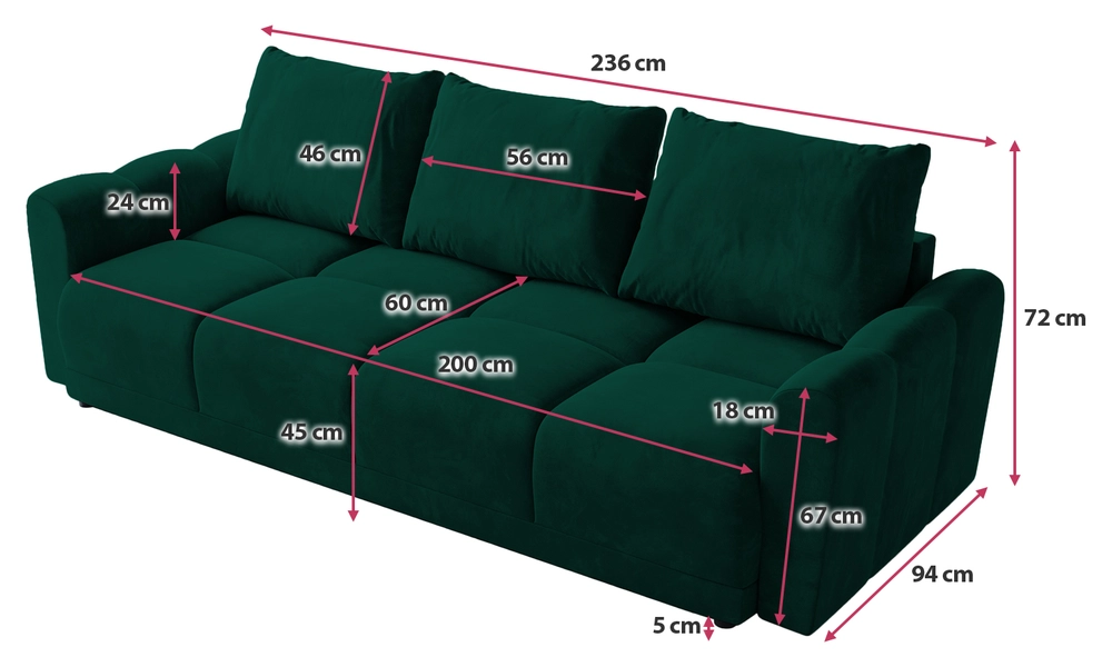 - Das Sofa verfügt über eine Schlaffunktion mit den Maßen 160x200 cm, ausgeklappt wird es mittels DL-Mechanismus, wodurch eine Beschädigung des Bodens vermieden wird.
