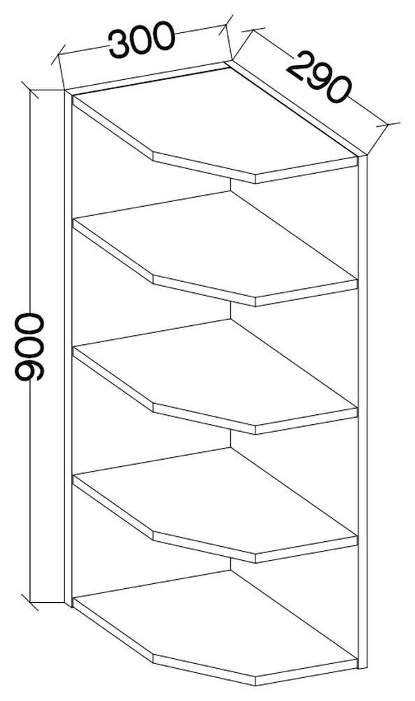 • Hängender offener Küchenschrank 30 cm SELENA. Das Gehäuse besteht komplett aus 16 mm starker Schichtstoffplatte. Die Kanten sind mit Melamin vor Beschädigungen geschützt. Der Hängeschrank ist mit vier Fachböden ausgestattet.
