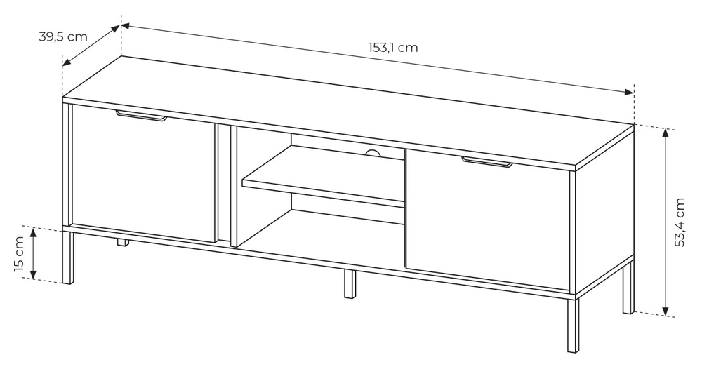 Entdecken Sie den RTV-Schrank LECCE ein Möbelstück, das modernes Design mit Zweckmäßigkeit verbindet. Eine Breite von 153 cm bietet Platz für einen Fernseher, Mediengeräte und weiteres Zubehör und macht Ihr Wohnzimmer zum Entertainment-Center.